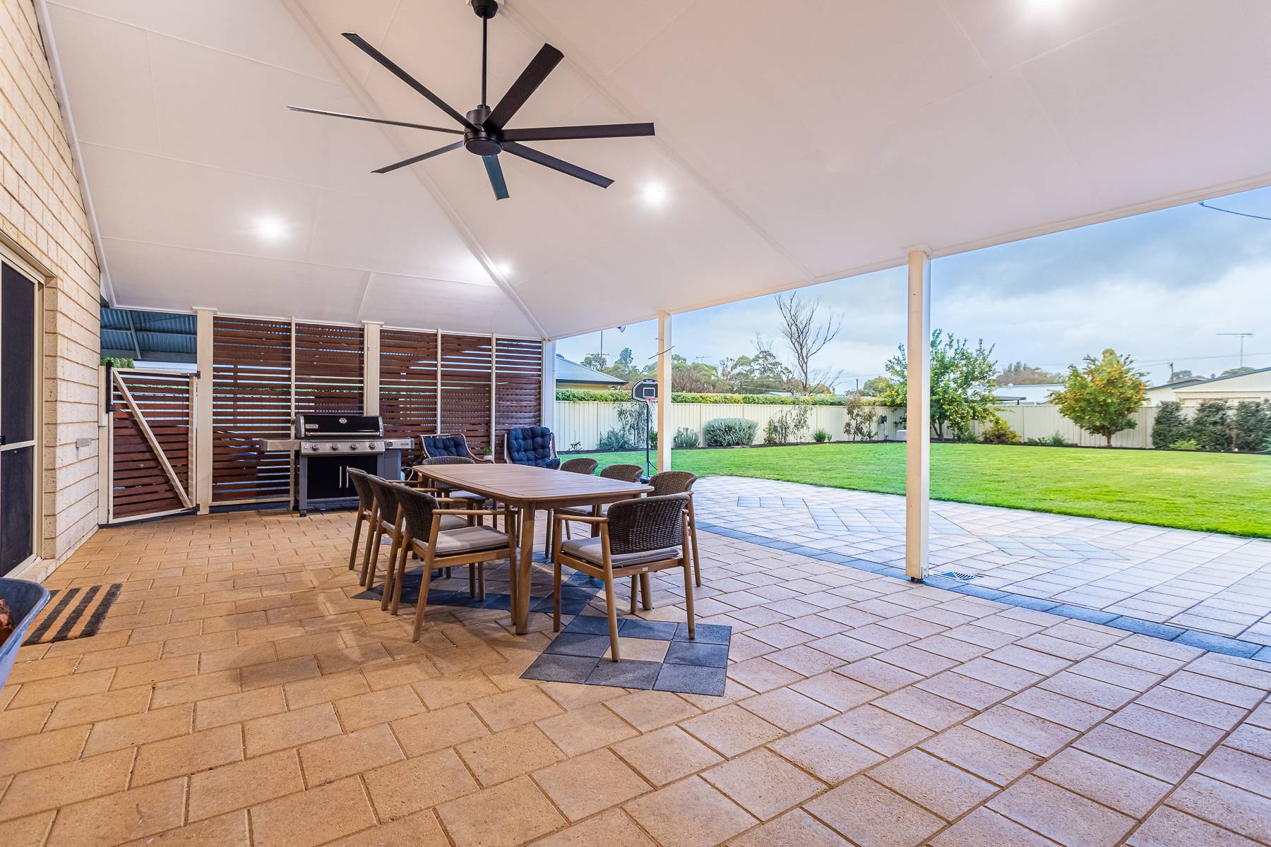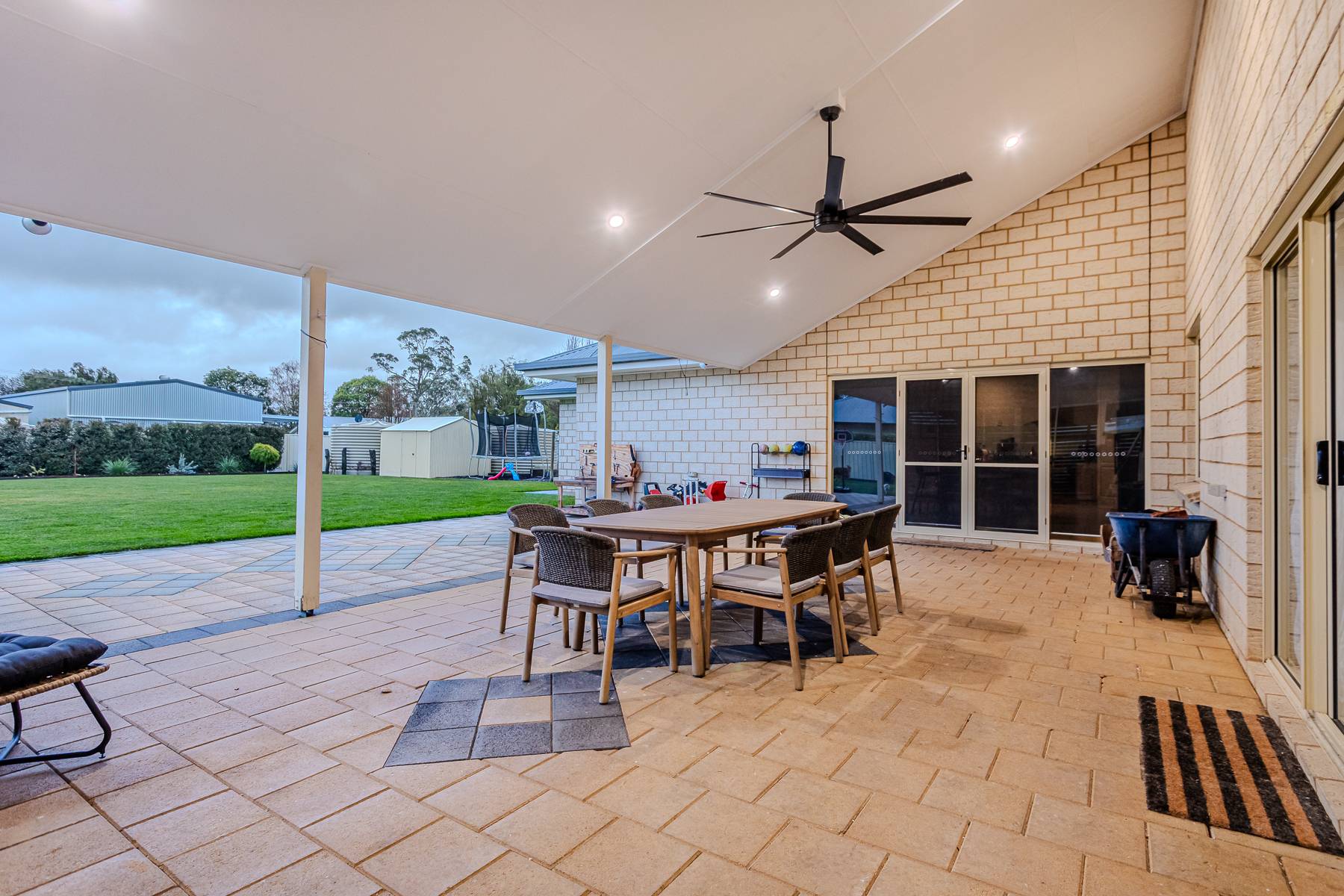 • Huge outdoor entertaining area: Seamlessly connected from the open plan area is a large and recently improved paved outdoor entertaining area perfect for entertaining and watching the children play